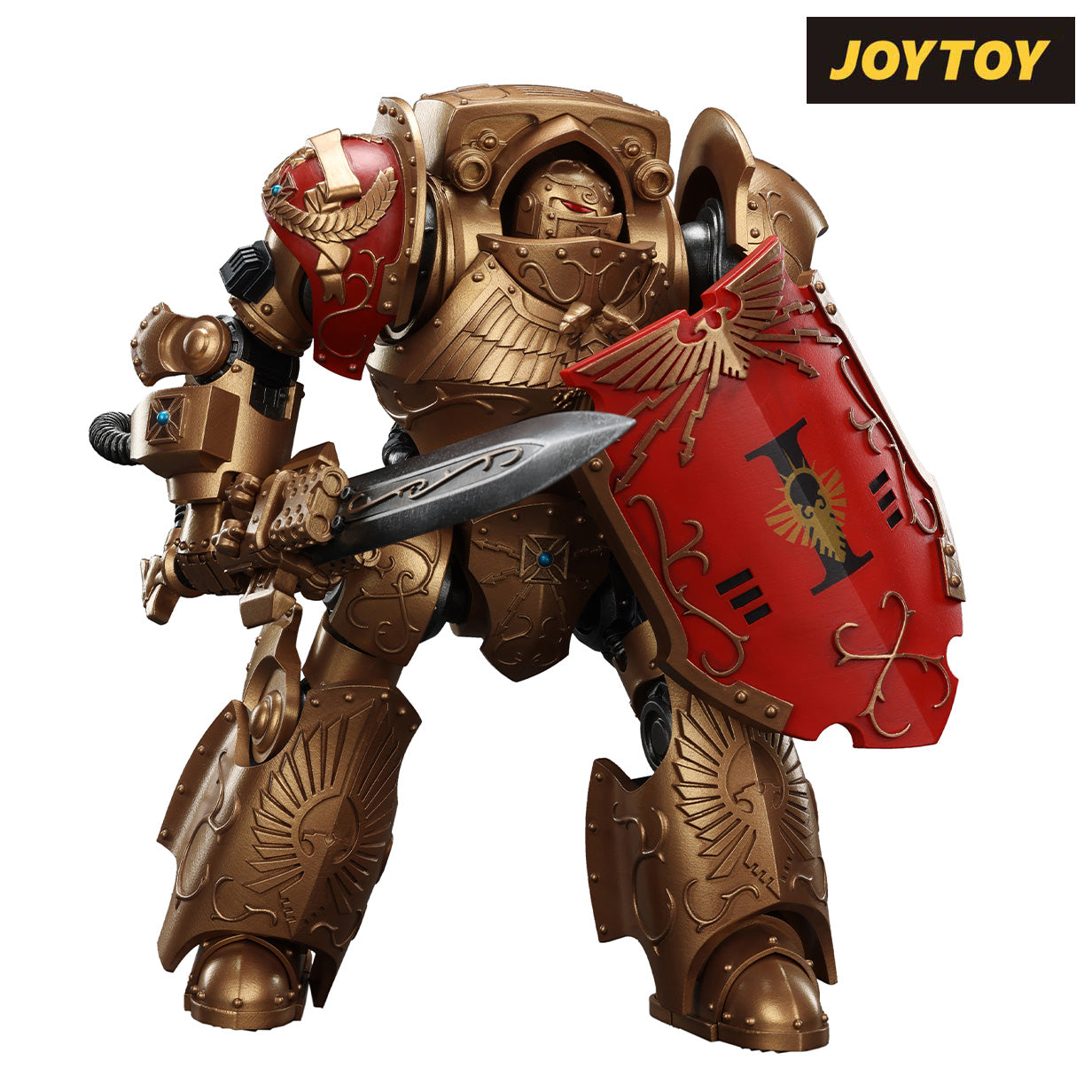JoyToy Warhammer The Horus Heresy Action Figure - Ultramarines, Invictarus Suzerain #5 with Bolt Pistol, Legatine Axe and Argyrum Pattern Boarding Shield (1/18 Scale) Preorder