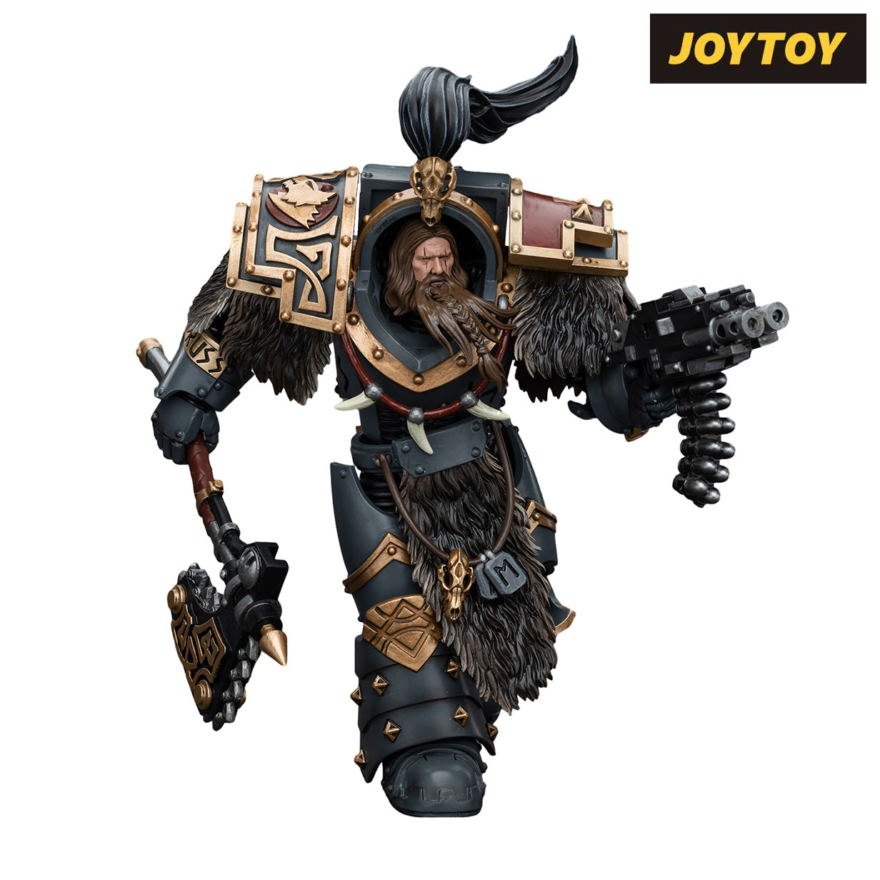 This highly detailed 1/18 scale Warhammer The Horus Heresy Space Wolves action figure features 30 points of articulation and comes with additional interchangeable parts.