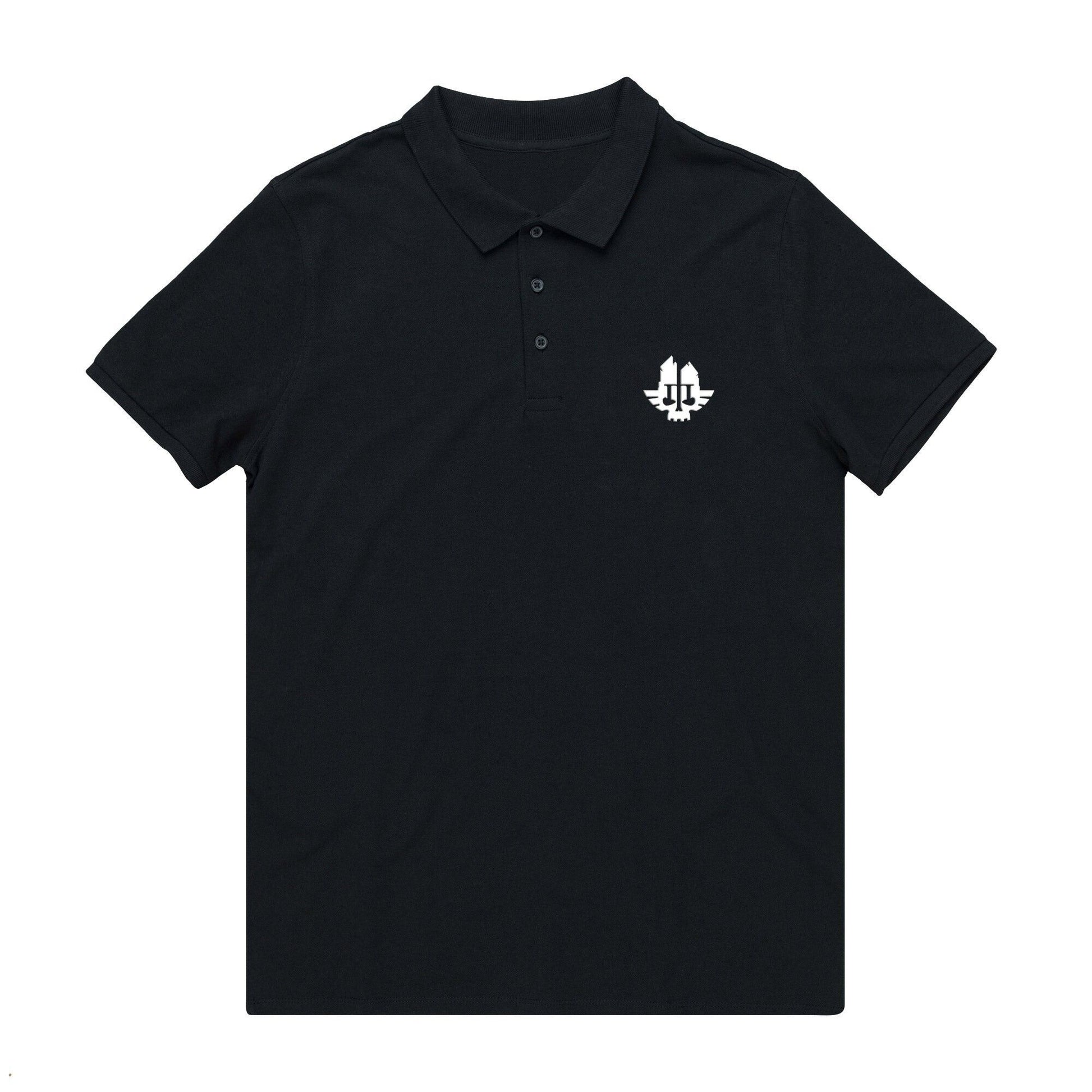Official Warhammer 40,000: Darktide Polo Shirt available in sizes Small to 2XL on Black.